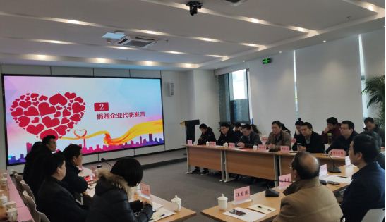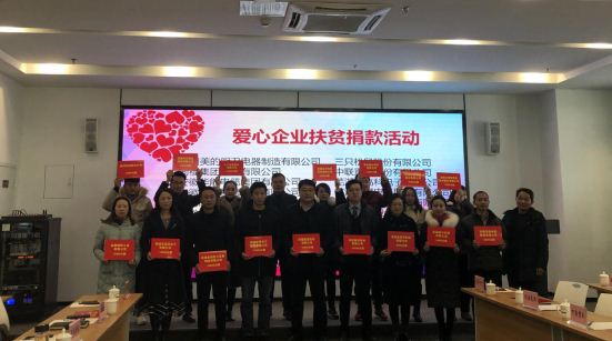 会上,举行了爱心企业代表向贫困村的集体捐赠仪式。
